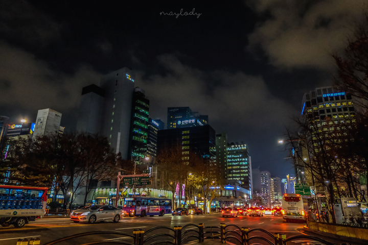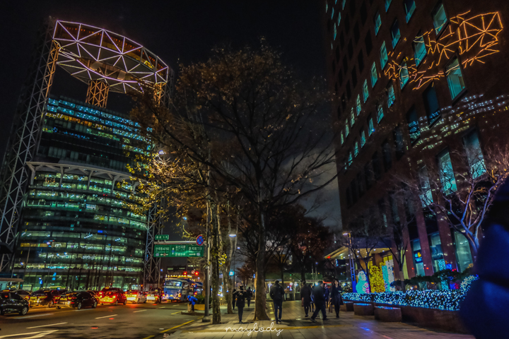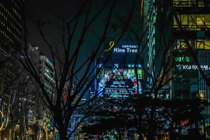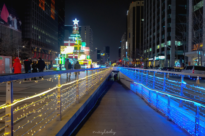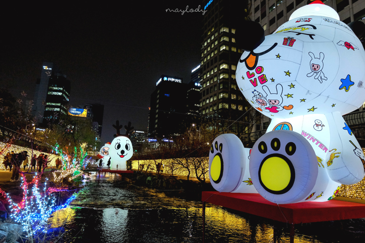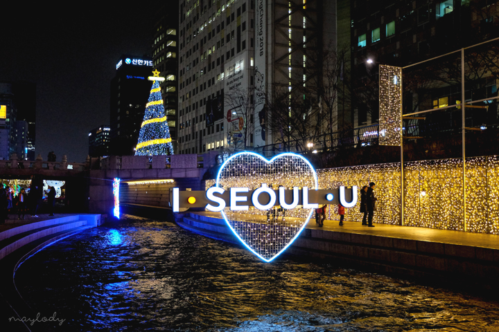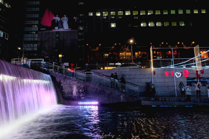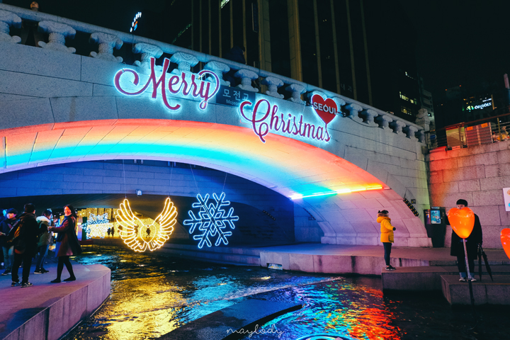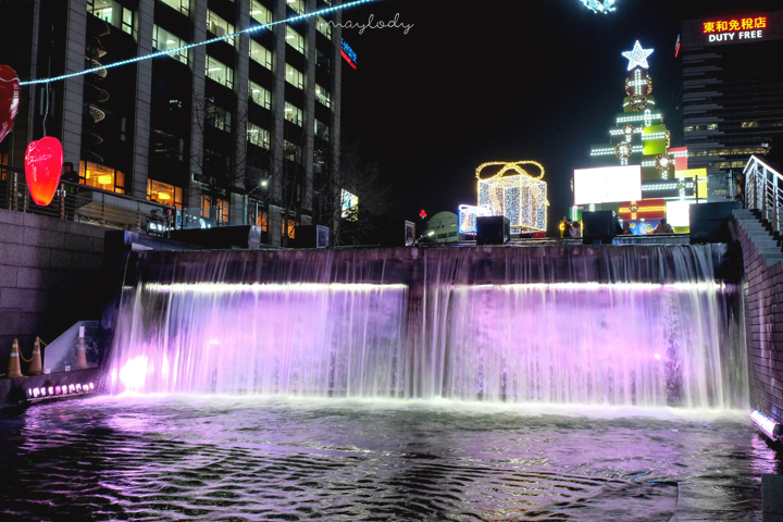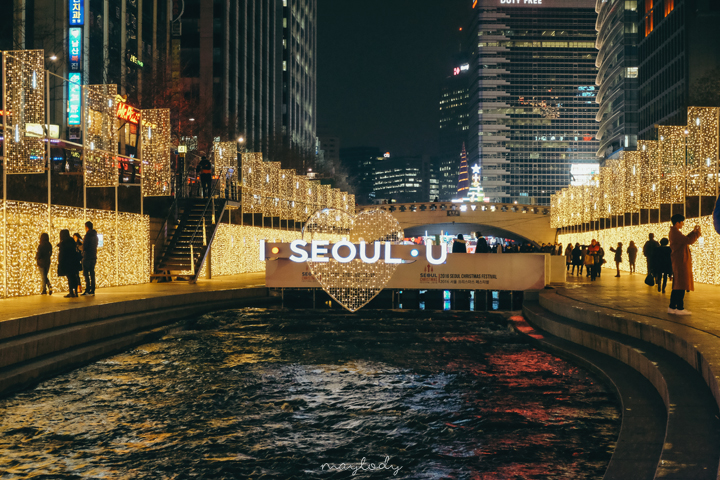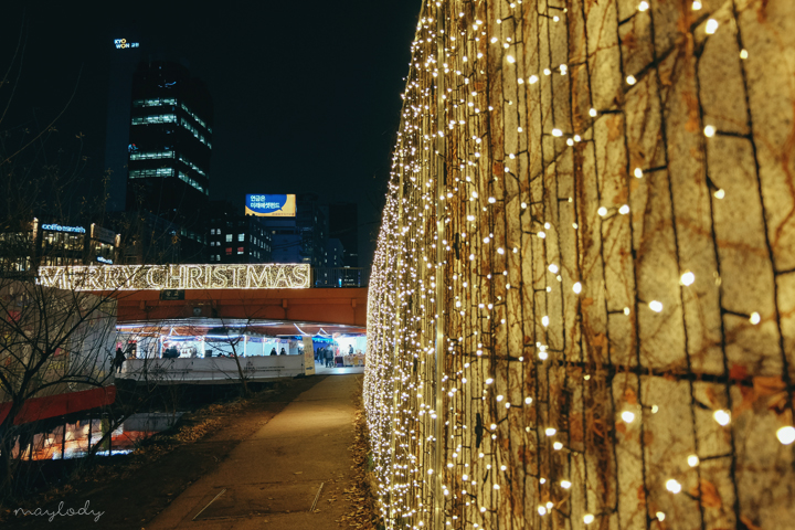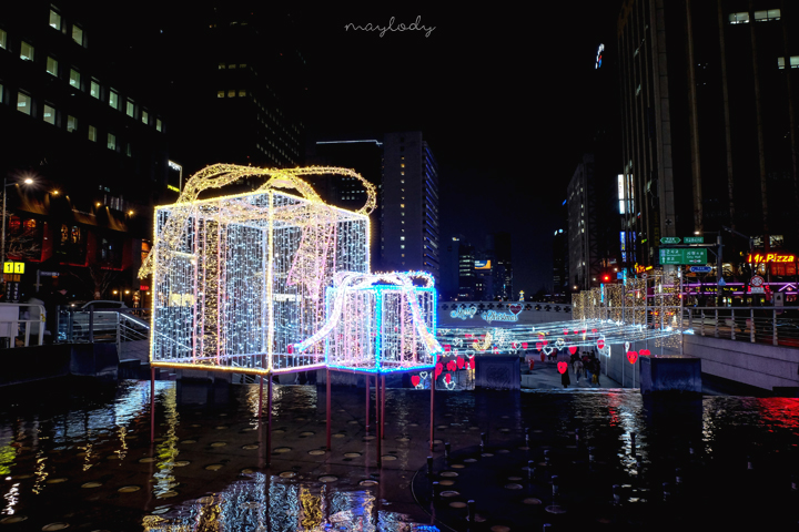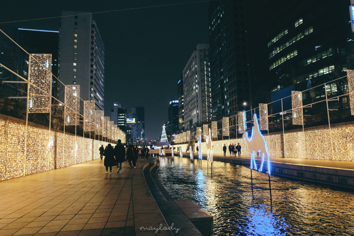พออิ่มจนจุกก็ออกเดินไปยังคลองชองเกชอน ซึ่งตอนนี้ประดับประดาด้วยไฟสวยงาม