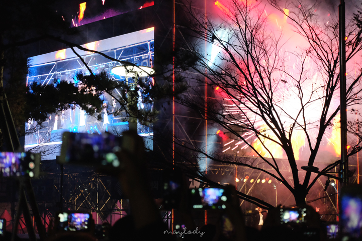 ตอนนั้นคนเยอะแล้ว และศิลปินก็กำลังทำการแสดงอยู่ ดูเวลาก็เกือบ 5 ทุ่มครึ่ง อีกไม่นานก็เข้าวันใหม่