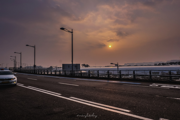 ระหว่างทางไปสนามบินเราจะเห็นชาวเกาหลีจอดรถดูพระอาทิตย์ขึ้นเป็นทางยาวเลยทีเดียว